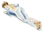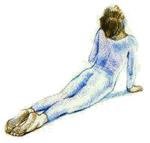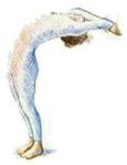 Mély belégzéssel hátrahajlunk, karjainkat magasba nyújtva tartjuk a fülünk mellett.