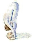 Mély kilégzéssel a bal lábunkkal is belépünk a két kezünk közé, előrehajolunk, kezeinkkel igyekezzünk megérinteni a talajt.
